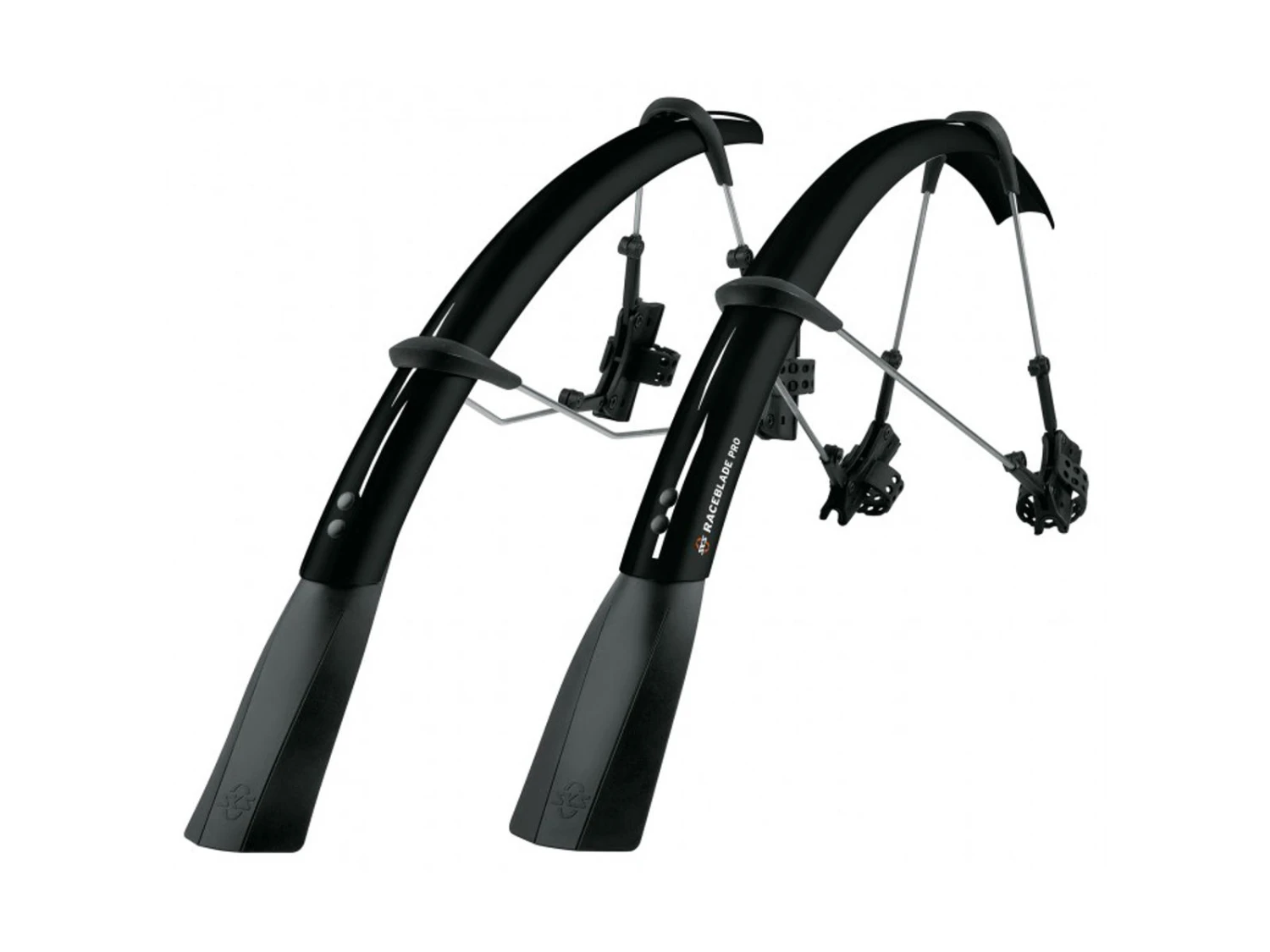 Med ett SKS skärmset Racerblade Pro Sort 700 x 25 mm så får du ett skärmset till din racercykel med en däckbredd på max 25 mm. Det är lätt att anpassa skärmarna till dina hjul, genom att justera längden på stagen. Dess smarta monteringssystem passar även till aerogafflar och är kompatibelt med skivbromsar.