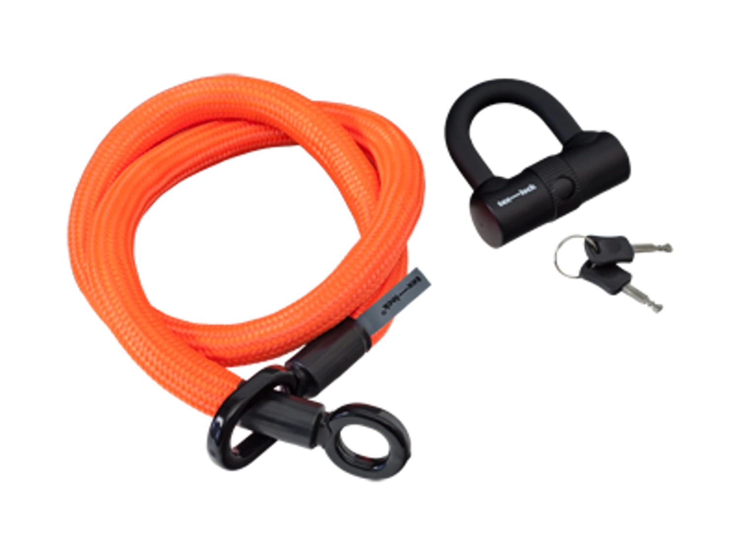Detta ögonlås från Texlock är ett säkert cykellås som innehåller en härdad metallkärna, som är klädd med flera lager textilfibrer. Varje lager utför en specifik funktion som skyddar din cykel från att bli stulen och avvärjer attacker med bultklippare eller såg.