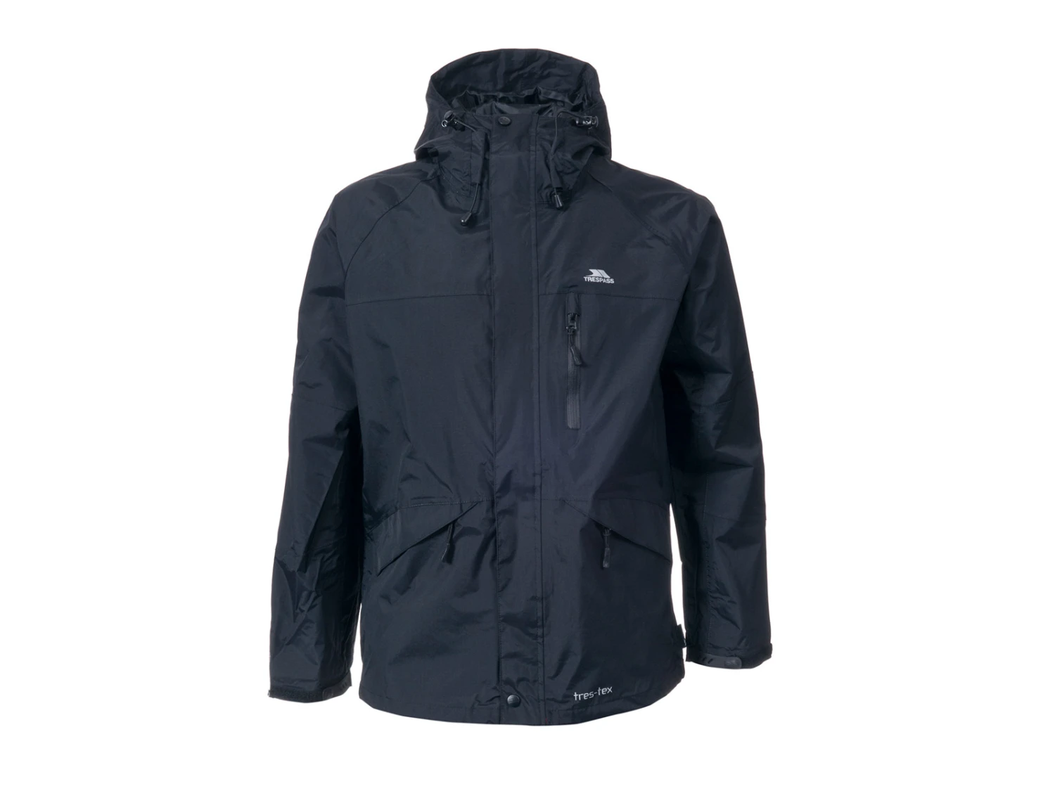 Corvo-regnjackan från Trespass är utrustad med många bra egenskaper, som t.ex. en justerbar luva och justerbara muddar, 3 fickor samt 1 invändig, tejpade sömmar, meshfodring, bra andningsbarhet, svettransporterande egenskaper samt ett vind- och vattentätt skal.