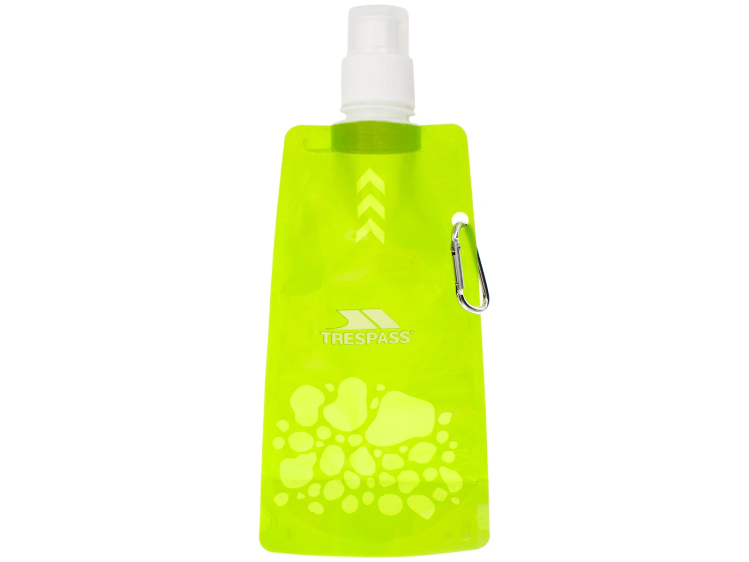 Här får du en riktigt praktisk vattenflaska från Trespass, som lätt kan vikas när den är tom, så den kommer att fyllas minimalt och därför är lätt att förvara. Flaskan kan rymma 480 ml och har en enkel trycköppning.
