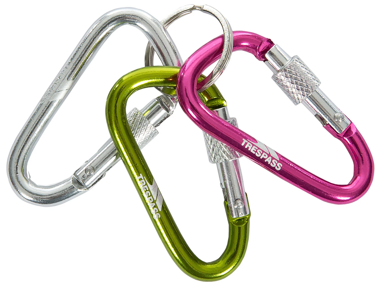 Trespass Lock X är en nyckelring med 3 karbinhake i olika färger. Fäst mindre föremål på ryggsäcken eller bältet med dessa karabinkrokar.