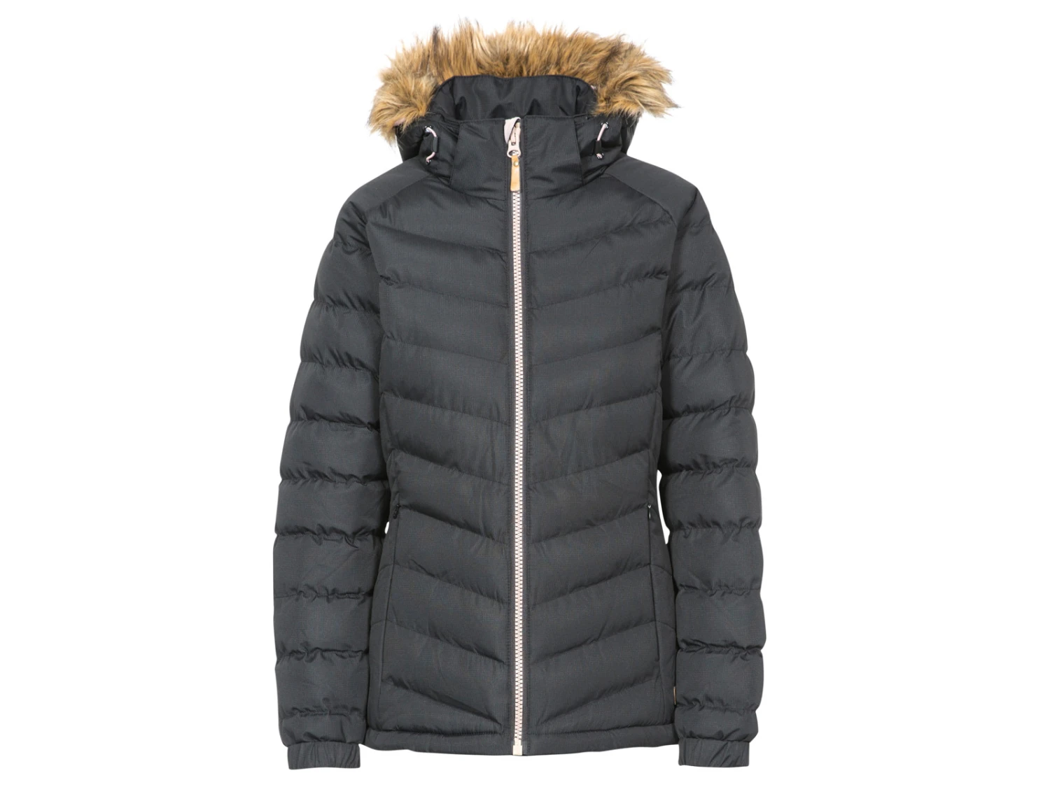 Denna Nadina fiberjacka från Trespass är en snygg och klassisk vinterjacka. Jackan är producerad i ett textil som kallas ColdHeat teknologi, som verkar isolerande och samtidigt sparar kroppsvärem i fibrernas små luftfickor. Jackan har pälskant på luvan, som enkelt kan knäppas av om du vill använda den utan päls.