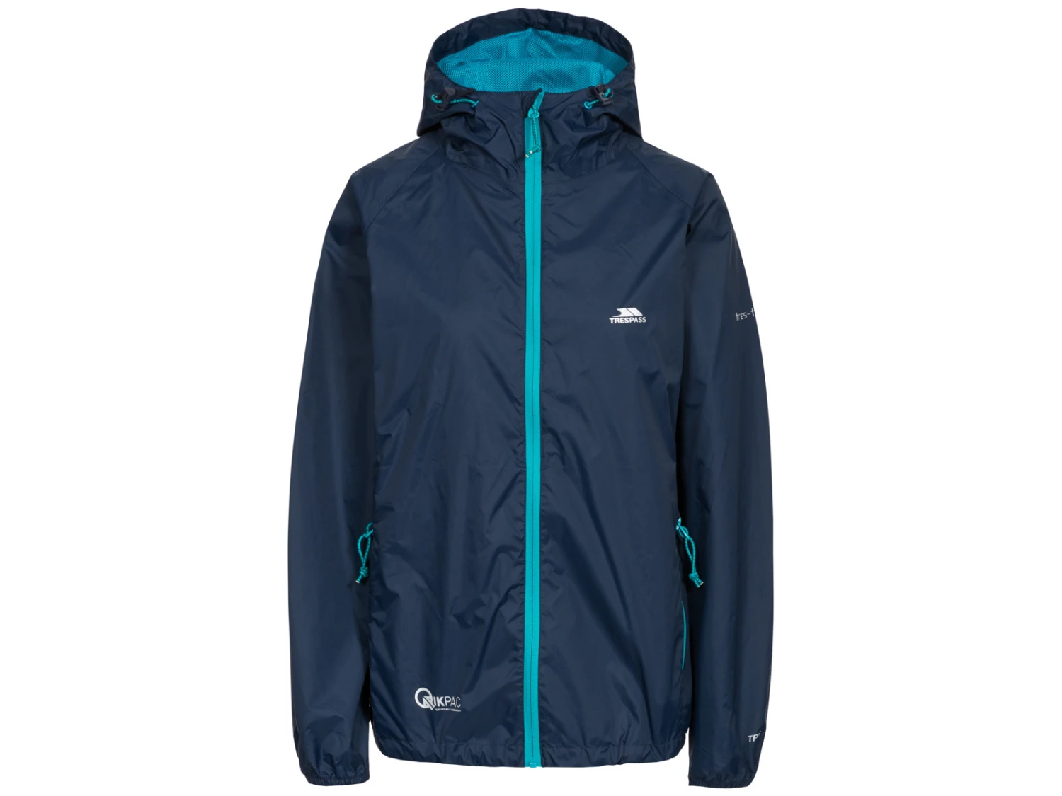 Trespass Qikpac är en regnjacka till kvinnor, som med sin lätthet och andningsbara material skyddar dig mot både regn och vind. Jackan är otroligt andningsbar och kan snabbt och enkelt packas ner i den medföljande påsen, så den inte tar så mycket plats i bagaget om vädret skulle skifta. Regnjackan från Trespass är designad till kvinnor, har en justerbar och rymlig luva, 2 blixtlåsfickor och elastiska ärmar.