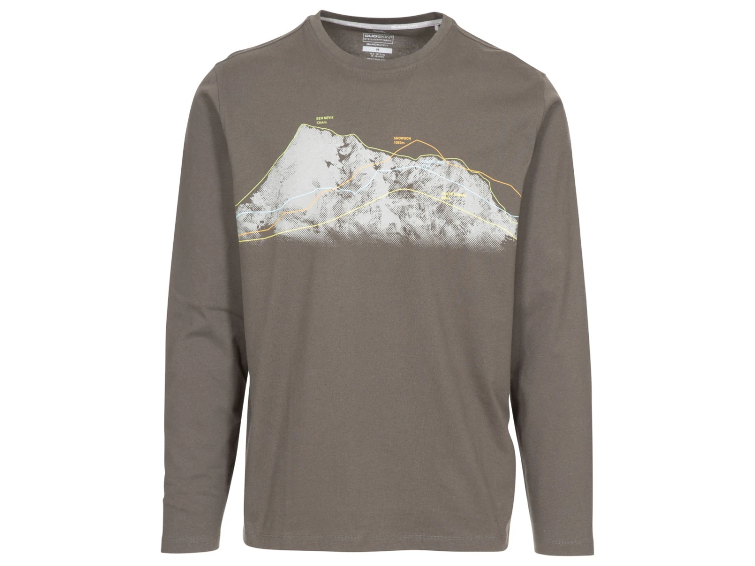 Denna coola långärmade t-shirt från Trespass med ett djärvt tryck av bergskedjor på bröstet är designad med rund hals för mannen som prioriterar både bra design och bra material. Blusen är tillverkad i ett snabbtorkande material som ger ett bra klimat om den används till t ex sport eller under andra ytterkläder.