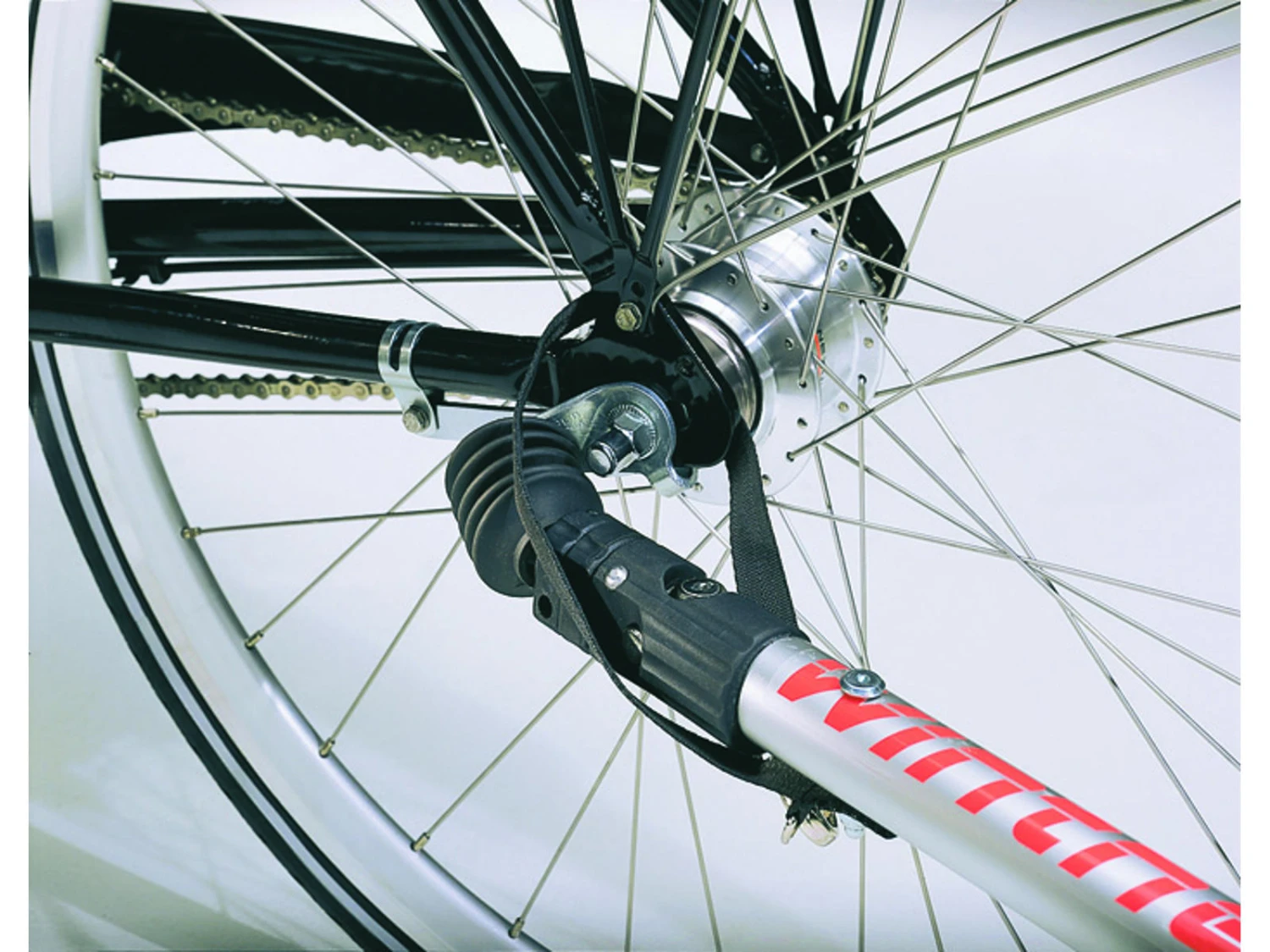 Fästet är monterat på bakaxeln och ska användas om din cykel är utrustad med en skivbroms. Observera att konsolen bara passar en Weber-dragstång. Om du har en annan dragkrok kan du köpa en Weber-insats för att få dragkroken monterad på din cykel. Du hittar Weber-insatsen här .
