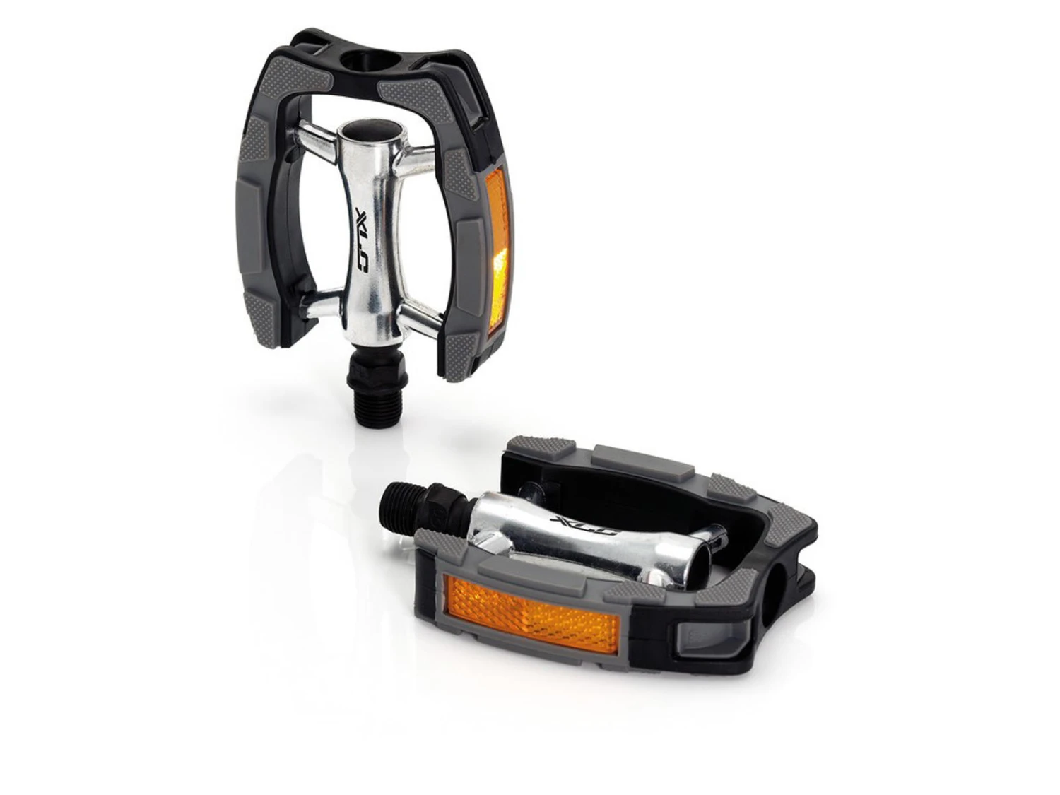 XLC-pedaler för stadscykel. Pedalerna är gjorda i solid men lätt aluminium med två reflektorer på varje pedal så att du syns i trafiken.