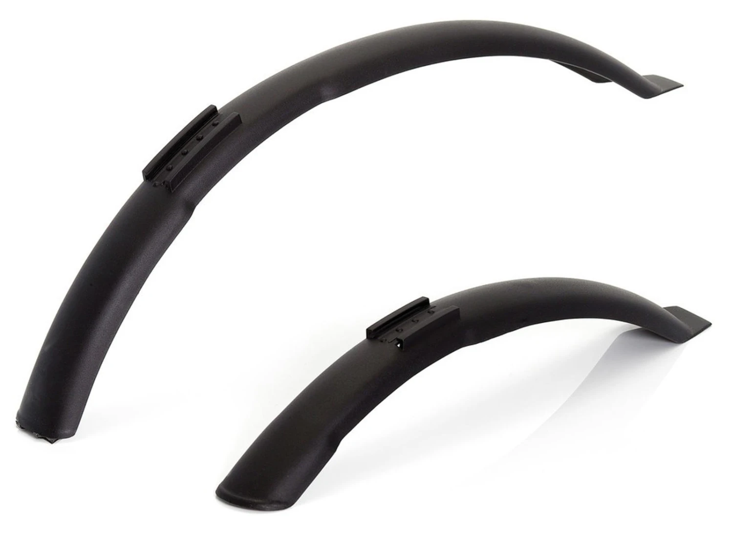 Stänkskärmset från XLC som kan monteras på cyklar med både 20″ och 28″ däck. Monteras med skruvar och klickar enkelt på och av. Kompatibel med v-broms.