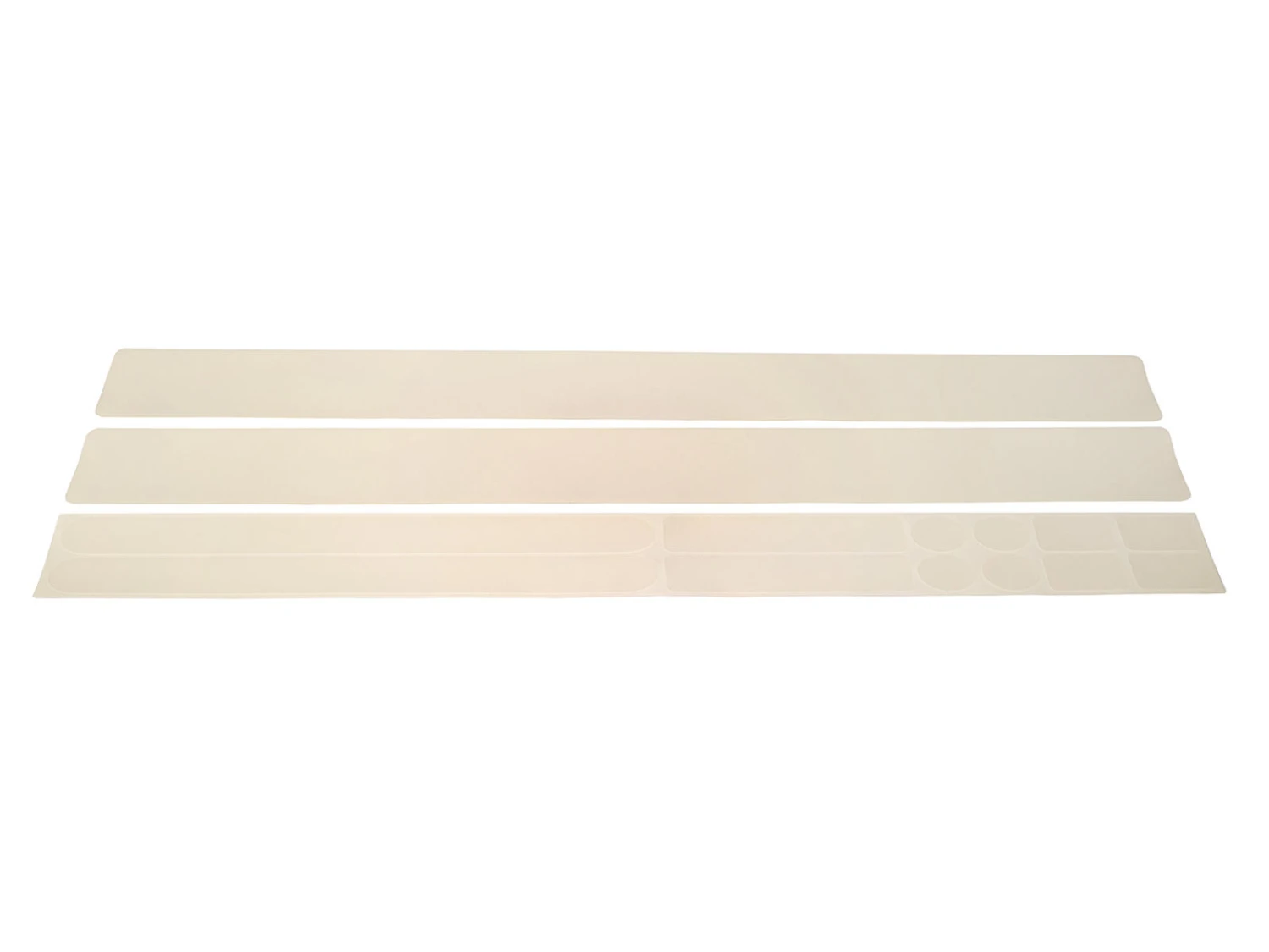 Ramskyddssatsen är tillverkad för att skydda din cykel från repor och hål. När cykeln skakas under din promenad eller träning kommer kablarna att gnugga av ramen och med tiden kommer de att gnaga hål i målningen. Eftersom tävlingscyklar inte har skärmar på, kommer framhjulet att kasta stenar i snedstället, vilket ger stenhud. Dessa självhäftande transparenta lappar säkerställer att ramen är optimalt skyddad mot repor / hål.