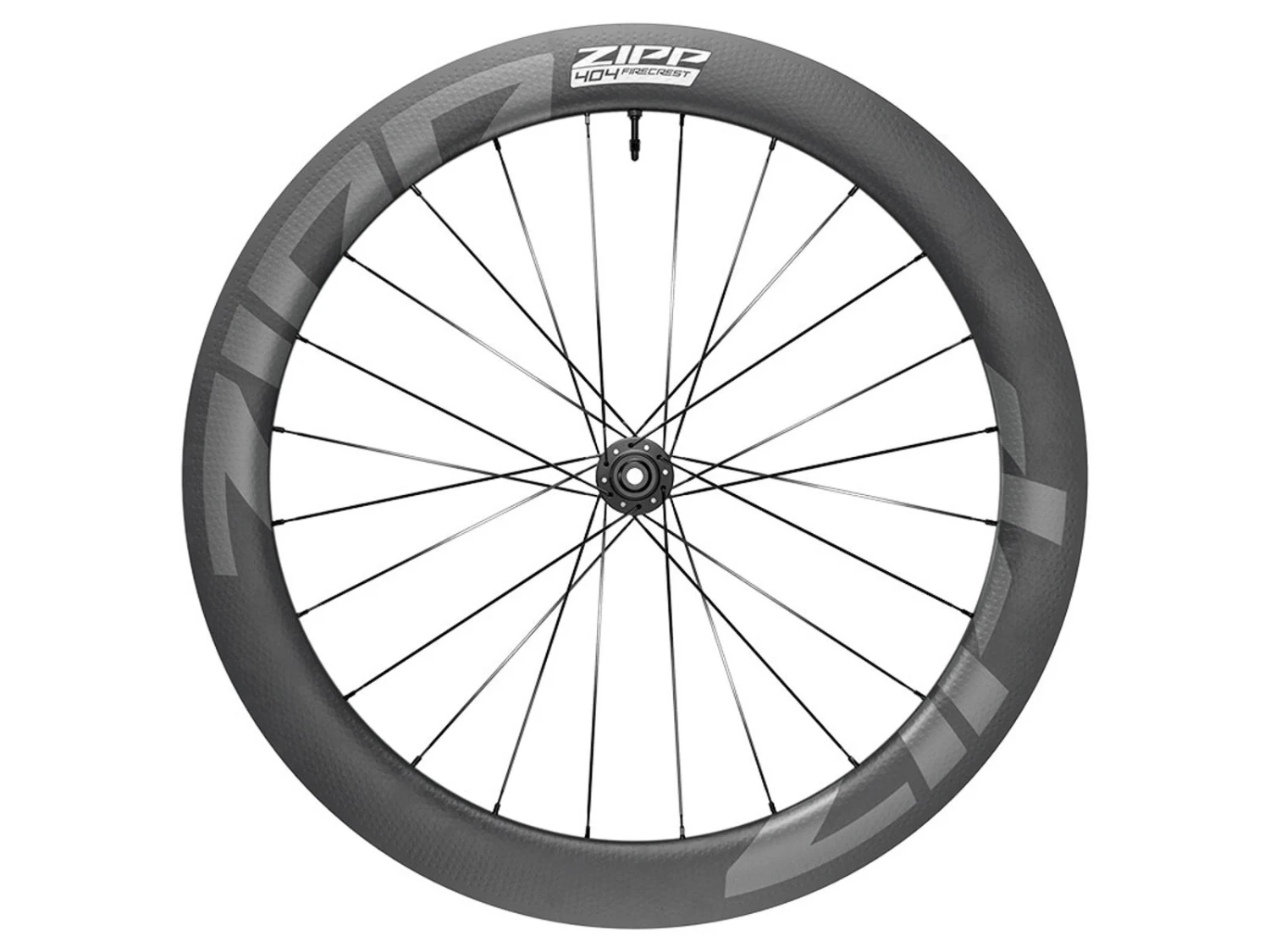 Framhjulet 404 från Zipp är tillverkat i ultralätt kol och är utvecklat speciellt för användning på vägcyklar med skivbromsar.